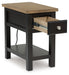 When you’re styling your living room, convenience is key. With this chairside end table, casual flair meets can’t-miss function. Tired of trekking to find a charger when your device is dead? This table's built-in outlets and USB ports allow you to stay at ease in your favorite seat. The fashionably functional piece pairs a dark chocolate brown with a light wood tone, complementing a variety of color palettes.
