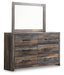 | Details | Made of engineered wood (MDF/particleboard) and decorative laminate, Brown rustic finish with burnt orange and teal accents in a replicated wood grain with authentic touch, 6 smooth-gliding drawers, Drawers lined with faux linen laminate, Dark-tone industrial hardware, Mirror attaches to back of dresser, Assembly required, Includes tipover restraint device | |