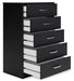 | Details | Made with engineered wood (MDF/particleboard/plywood) and decorative laminate for the right balance of affordability and durability, Matte black finish with subtle replicated wood grain, 5 smooth-gliding drawers with ball-bearing construction and vinyl-wrapped sides and back, Brushed nickel-tone hardware, Safety is a top priority, clothing storage units are designed to meet the most current standard for stability, ASTM F 2057 (ASTM International), Drawers extend out to accommodate maximum access to drawer interior while maintaining safety, Assembly required | |