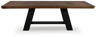 | Details | Includes dining extension table top and base, Base made with hardwood solids, veneer and MDF substrate, Table top made with hardwood solids, mango wood veneer and MDF substrate, Two-tone finish (mindi wood veneer inlay top with medium brown finish; base with painted black finish), Table extends by pulling both ends and dropping in leaf , Heavy-duty ball-bearing equalizing table glide system, Extends smoothly thanks to easy-glide technology, Seats up to 10 , Assembly required | |