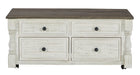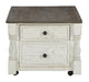 | Details | Made of pine wood, pine veneer and engineered wood, Two-tone finish; distressed weathered gray top with distressed vintage white base, Antiqued iron-tone hardware, Casters for easy mobility, 4 storage drawers (2 large front drawers and two smaller side drawers), Lift-top design | |