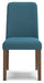 A refreshed take on retro aesthetics. This side chair adds an air of playful simplicity to your dining space, capturing the architectural language of mid-century stylings. The seat invites the eye with a soft-edged silhouette and chic blue cushion. A casual, yet timeless, finish on the frame creates visual contrast to complete this study in form and function.