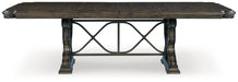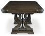 | Details | D947D5: Made with hardwood solids, oak and ash swirl veneers, MDF substrates and cast resin components, Dark brown finish, Double pedestal base, Removable center leaf, Table extends by pulling both ends and dropping in leaf, Shaped metal stretcher bar, Dining chairs sold separately, Seats up to 8, Assembly required, D947-01: Made with wood and cast resin, Dark brown finish, Foam cushioned seat with polyester upholstery, Ornate cabriole legs, Assembly required, | |