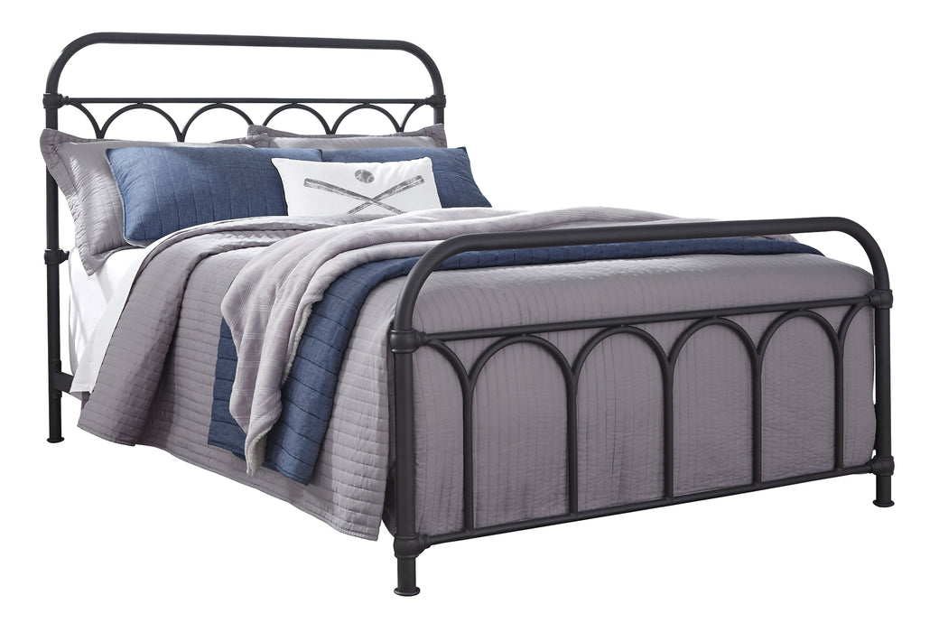 Looking to bring back a sense of bygone charm? Dream it, live it with this queen metal bed. Matte black frame with moulded "fittings" brilliantly mimics wrought-iron beds from yesteryear for a look that’s perfect for your modern farmhouse or cottage-quaint escape.