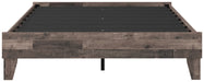 | Details | Queen platform bed (does not include headboard), Includes footboard, rails and platform, Made with engineered wood (MDF/particleboard/plywood) and decorative laminate for the right balance of affordability and durability, Rustic butcher block finish over replicated pine grain with authentic touch, Bed does not require additional foundation/box spring; accommodates most zero clearance adjustable bases, Mattress available, sold separately, Assembly required | |