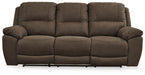 Kick back, relax, and enjoy some sports on TV with this reclining sofa. You will love its double stuffed pillow top arms and soft-as-suede faux leather upholstery. The family-friendly espresso color and creative stitching add panache. Recline in comfort even if floor space is limited, thanks to the space-efficient zero wall design. This bustle back sofa will always be a win.