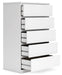 Details Made with engineered wood (MDF/particleboard/plywood) and decorative laminate for the right balance of affordability and durability, Solid white finish, Decorative laminate replicates natural or man-made material surfaces with consistent color, pattern and texture, 5 smooth-gliding drawers with ball-bearing side glides; vinyl-wrapped sides and back for durability, Safety is a top priority, clothing storage units are designed to meet the most current standard for stability, ASTM F 2057 (ASTM International, Drawers extend out to accommodate maximum access to drawer interior while maintaining safety, Assembly required