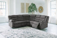 Affordable luxury made easy. An essential for living room lounging, this sectional is a star in social spaces. Its warm brown faux leather is well-suited for mixing and matching with your existing pieces. Pull tab reclining keeps you and your companions covered when it comes to comfort. And this functional piece is equally as fashionable, with design details like a channel-stitched back incorporating subtle visual interest.