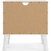 The perfect marriage of contemporary and casual style, this nightstand is a charming addition to your home. It's expressive with a two-tone look in a solid matte white finish and a replicated sugarberry wood grain pattern. White knobs and splay legs add a finishing touch, while the open shelving allows for extra storage.