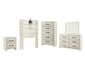 | Details | B192-57: Made of engineered wood (MDF/particleboard) and decorative laminate, Wispy white finish over replicated oak grain with authentic touch, 2 decorative sconce lights, LED with 3 AA batteries, 2 slim-profile USB charging stations, Power cord included; UL Listed, Hardware not included, ¼" bolts are needed to attach headboard to existing bed frame, Bolt length depends on thickness of your bed frame, Assembly required, B192-46: Made of engineered wood (MDF/particleboard) and decorative laminate, Wispy white finish over replicated oak grain with authentic touch, Large-scale hardware with dark finish, 5 smooth-gliding drawers, Drawer interiors are lined with a faux linen laminate for a clean, finished look, Safety is a top priority, clothing storage units are designed to meet the most current standard for stability, ASTM F 2057 (ASTM International), Drawers extend out to accommodate maximum access to drawer interior while maintaining safety, B192-92: Made of engineered wood (MDF/particleboard) and decorative laminate, Wispy white finish over replicated oak grain with authentic touch, Large-scale hardware with dark finish, 2 smooth-gliding drawers, Drawers lined with faux linen laminate for finished aesthetic, 2 slim-profile USB charging stations, Power cord included; UL Listed, B192B1: Includes dresser with mirror, Made of engineered wood (MDF/particleboard) and decorative laminate, Wispy white finish over replicated oak grain with authentic touch, 6 smooth-gliding drawers, Drawer interiors are lined with a faux linen laminate for a clean, finished look, Large-scale hardware with dark finish, Mirror attaches to back of dresser, Assembly required, | |