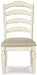 Bon appétit. With its rounded ladderback styling, chipped white finish and plushly cushioned seat, the Realyn dining room chair has all the right ingredients for a French country-inspired feast for the eyes.