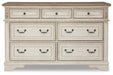 | Details | Made of wood, engineered wood and veneers, with cast resin components, Antiqued two-tone finish, Dark bronze-tone finished metal hardware, 7 smooth-gliding drawers with dovetail construction, Includes tipover restraint device | |