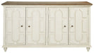 Whether your style is cottage chic, boho inspired or uniquely eclectic, this accent cabinet is sure to look right at home. Standout elements include raised panel door fronts that are a work of art. Wonderfully timeworn in antique white, this 4-door cabinet is topped with a warm brown finish for two-tone interest. Two adjustable shelves add to its practicality.