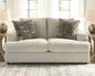| Details | Corner-blocked frame, Attached back and loose seat cushions, High-resiliency foam cushions wrapped in poly fiber, Platform foundation system resists sagging 3x better than spring system after 20,000 testing cycles by providing more even support, Smooth platform foundation maintains tight, wrinkle-free look without dips or sags that can occur over time with sinuous spring foundations, 2 decorative pillows included, Pillows with soft polyfill, Polyester upholstery and polyester pillows, Exposed feet with faux wood finish | |