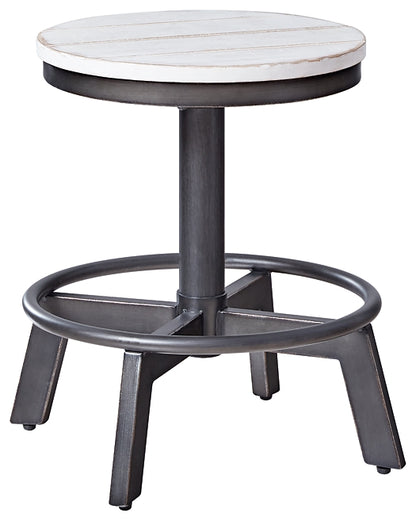 Make your home the hub for cool vibes with this stool. Two-tone finish scheme of distressed warm brown and aged gunmetal is full of urban industrial swagger. Adjustable height is accommodating for you and your guests. Add it behind your sofa with a long counter table for a dapper eating or working space.