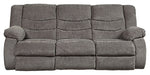 This reclining sofa puts the win in winning. Its waterfall back design and doubly plump pillow top arms team up with soft chenille fabric to go for the goal. Ample seating room makes the comfort possibilities endless. Sit back and relax. You won’t go wrong with this reclining sofa.